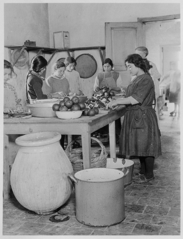 The orphanages produced as much fresh food as possible. Boys and girls raised staples like potatoes and onions in orphanage gardens. Girls preserved fruit for consumption and sale in the local community. Mrs. S.D. Jessup, the kitchen manager at Sidon Orphanage, introduced the American canning method to great success. The girls of Sidon were known for their delicious apricot and grape preserves. In these small ways, the children produced cost-effective meals while learning agricultural and culinary skills that would serve them in the future.