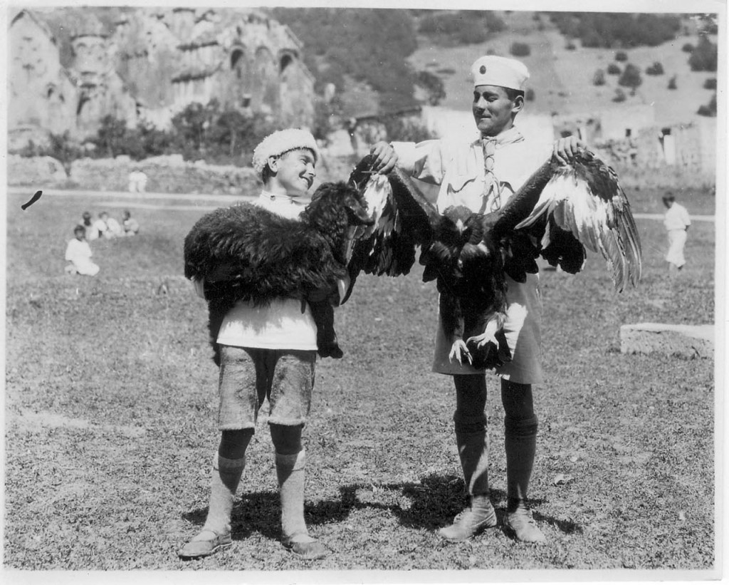 Boys with animals in Alexandropol, c. 1922. The boy on the right wears a Scout uniform.