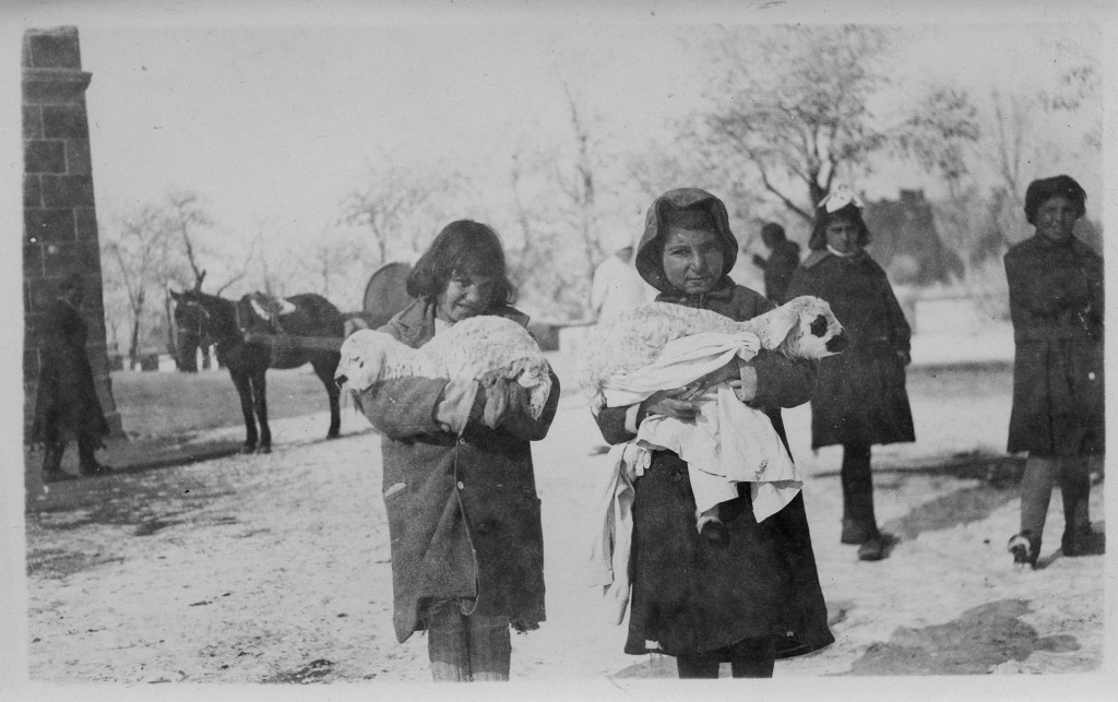 Girls with lambs, c. 1920.