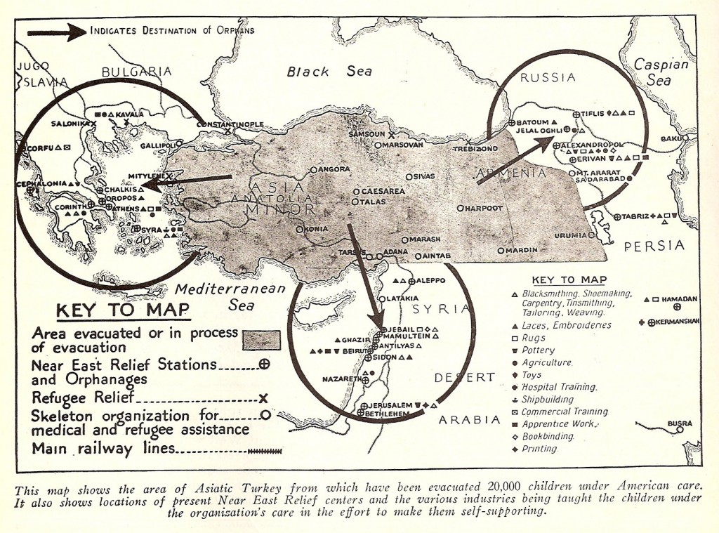 With the help of the Greek government, Near East Relief had ferried more than 16,000 children across the Aegean Sea by the end of 1923. About 9,000 of the children were Armenian. The others were ethnic Greeks who had been orphaned and displaced during the genocide of the Anatolian Greek population.