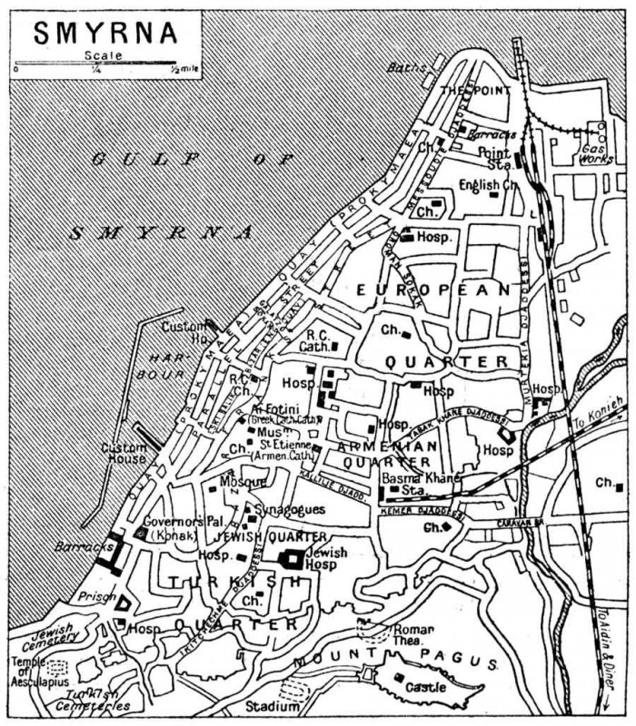 A quick online search turns up dozens of photographs and souvenir postcards of Smyrna. Of course, as we search for photos we should keep in mind that the fires destroyed many buildings and drastically changed the appearance of Smyrna’s waterfront. A trip to the nearest public library yields a few terrific books on Smyrna, and some helpful maps showing the different areas of the city.