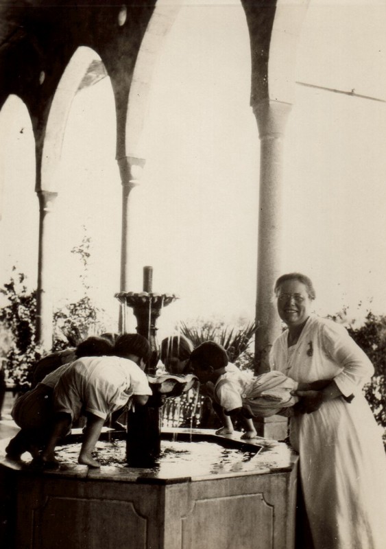 Right: Maria Jacobsen with children at the fountain, c. 1923.