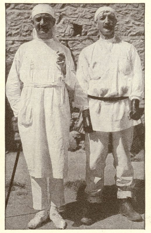 Left: Thurber and Post in “bug-proof” suits. Dr. Post created these suits to protect medical workers from disease in refugee camps.