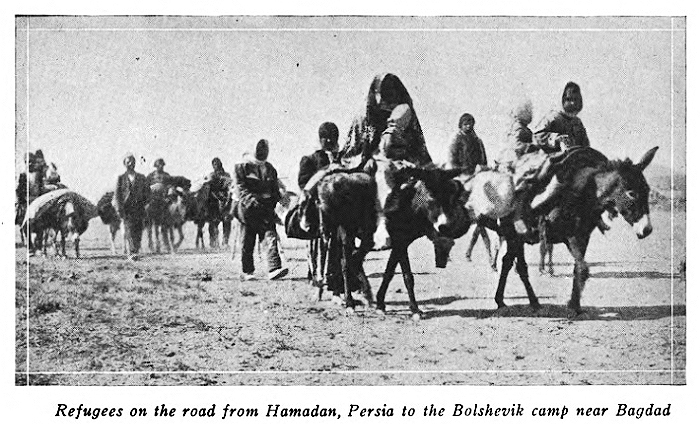 Assyrian refugees on the road back to Tabriz. Near East Relief provided refugees in Persia with food, clothing, and employment. From The New Near East, May 1922.