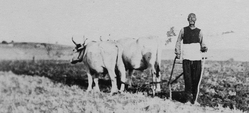A hardworking Rodosto farmer with his team of oxen, c. 1922. Near East Relief used this image on a promotional postcard.