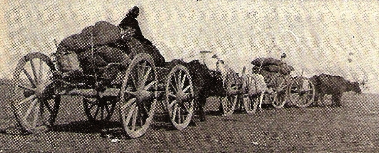 A caravan of Armenian refugees sets out for a new life at the Rodosto Farm Colony. 1921.