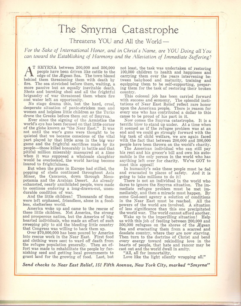 Near East Relief leaflet calling for aid for Smyrna.