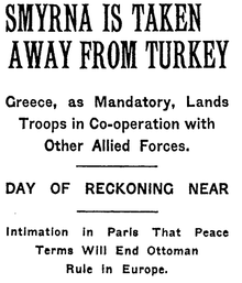 Left: New York Times headline announcing the Greek occupation of Smyrna following the Paris Peace Conference.