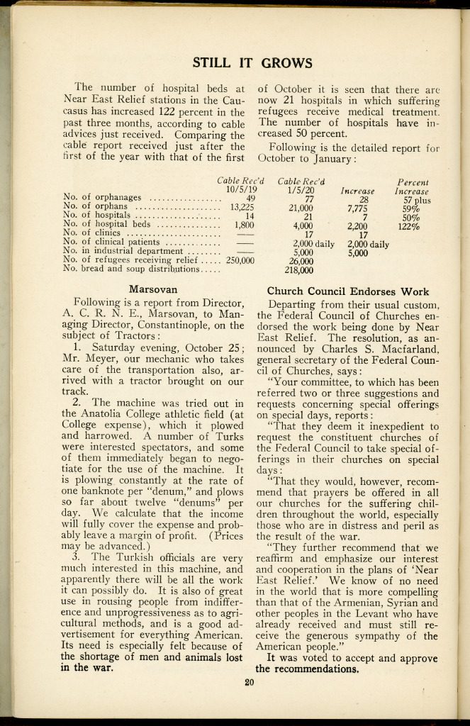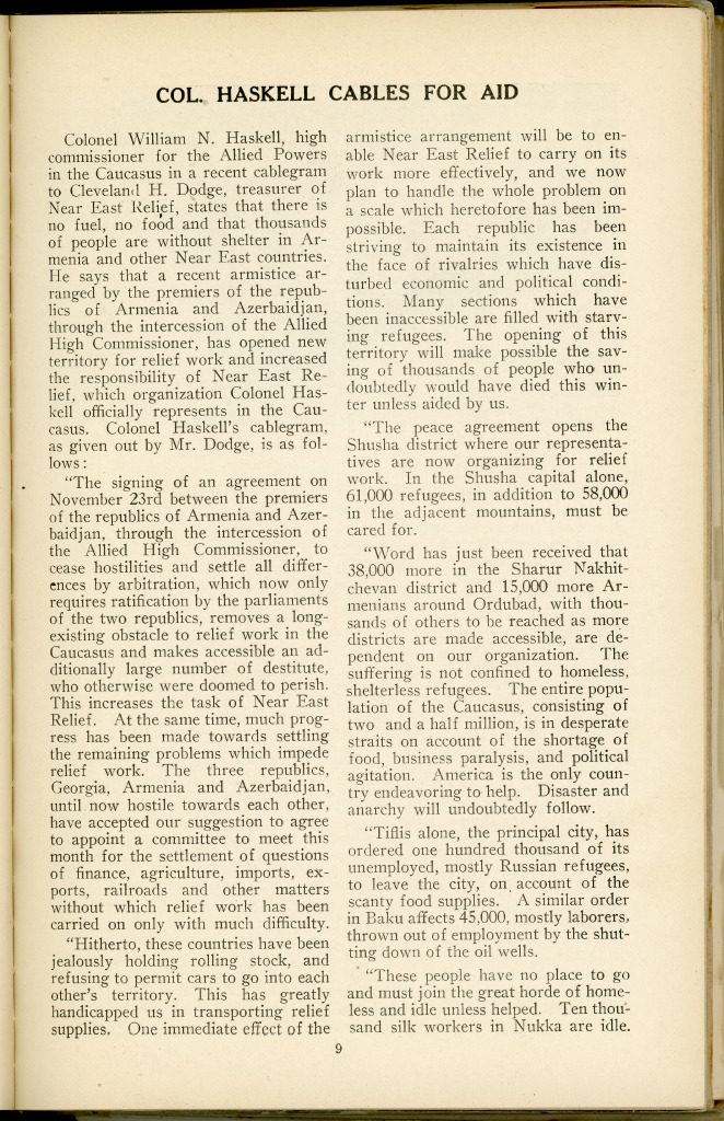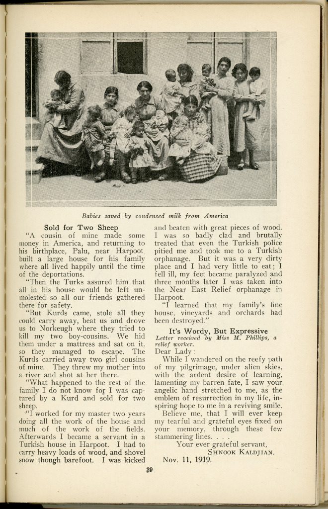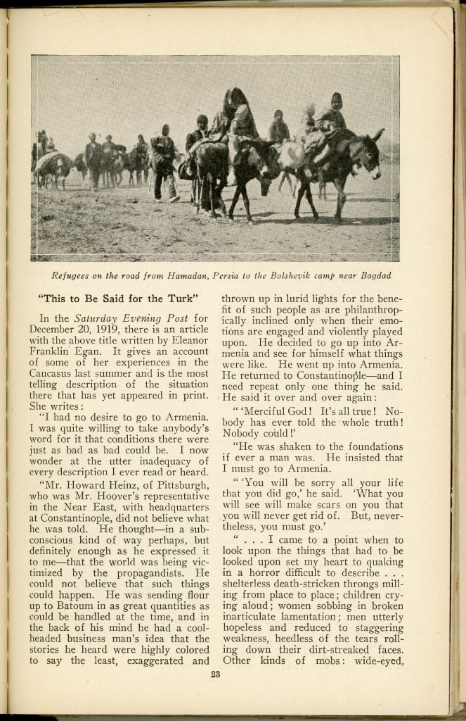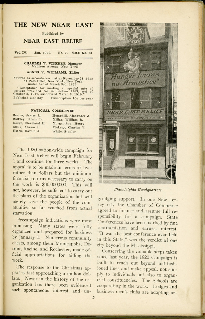 The New Near East, a magazine published starting in January of 1920, was crucial for engaging the American people in Near East Relief efforts. The stunning, and often heartbreaking photos, allowed for people a world away to see the plight of the Armenian people, and served as a critical tool for encouraging the life-saving citizen donations that changed the lives of so many refugees and children.