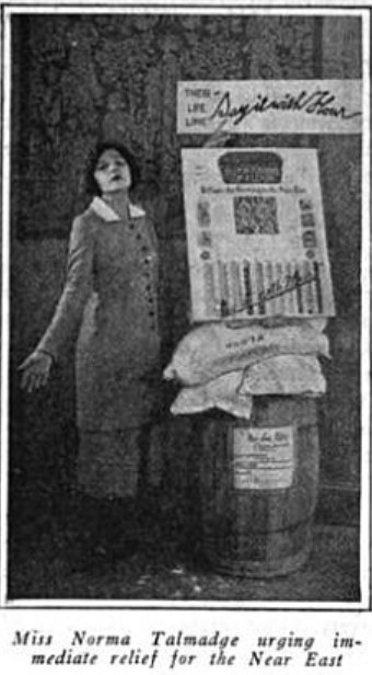 Norma Talmadge was a silent film star, voted the most popular in American in the 1921 National Star Popularity contest. Between 1910 and 1930 she appeared in more than a hundred films. Quoted in the January 1922 edition of New Near East praising “Alice in Hungerland”, Talmadge said of the film “it made me feel proud that I belonged to a profession which possesses the power to convey to the public, in graphic, irresistible way such a magnificent message as yours.”